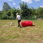 Mit einem Lächeln 😄 (und manchmal leichtem Zungenschnaufen 😅) meisterten Hund und Mensch die Stationen: Mal flitzte der Pudel durch den Tunnel 🌀, mal musste das Herrchen seine Zielsicherheit beim „Holzpudel-Abwurf“ 🎳 beweisen. Hindernisse, Sprünge und jede Menge Spaß – und das alles unter großem Gelächter 😂 der Zuschauer.