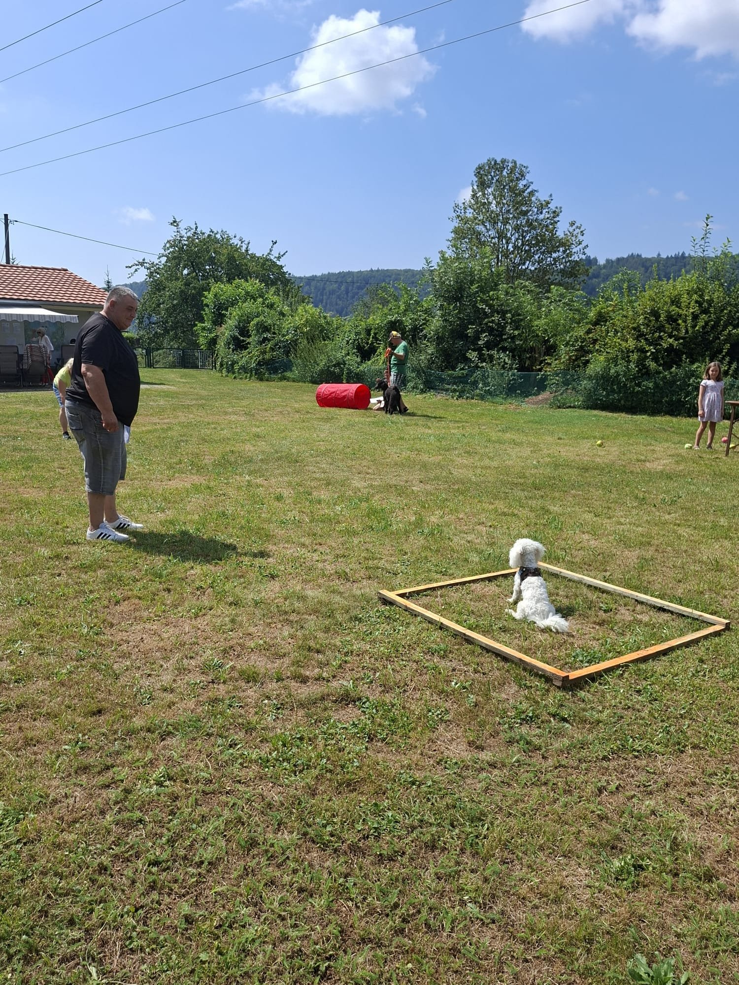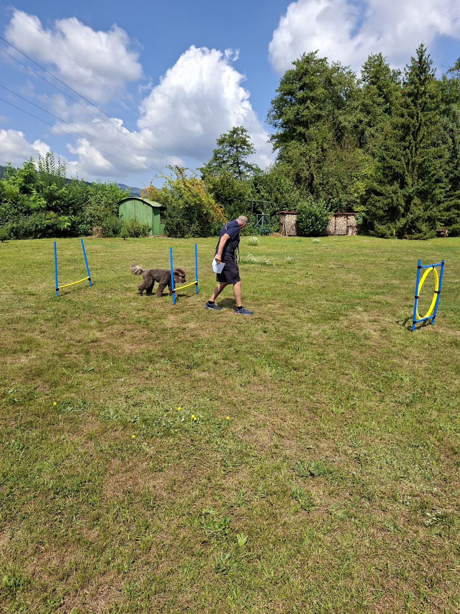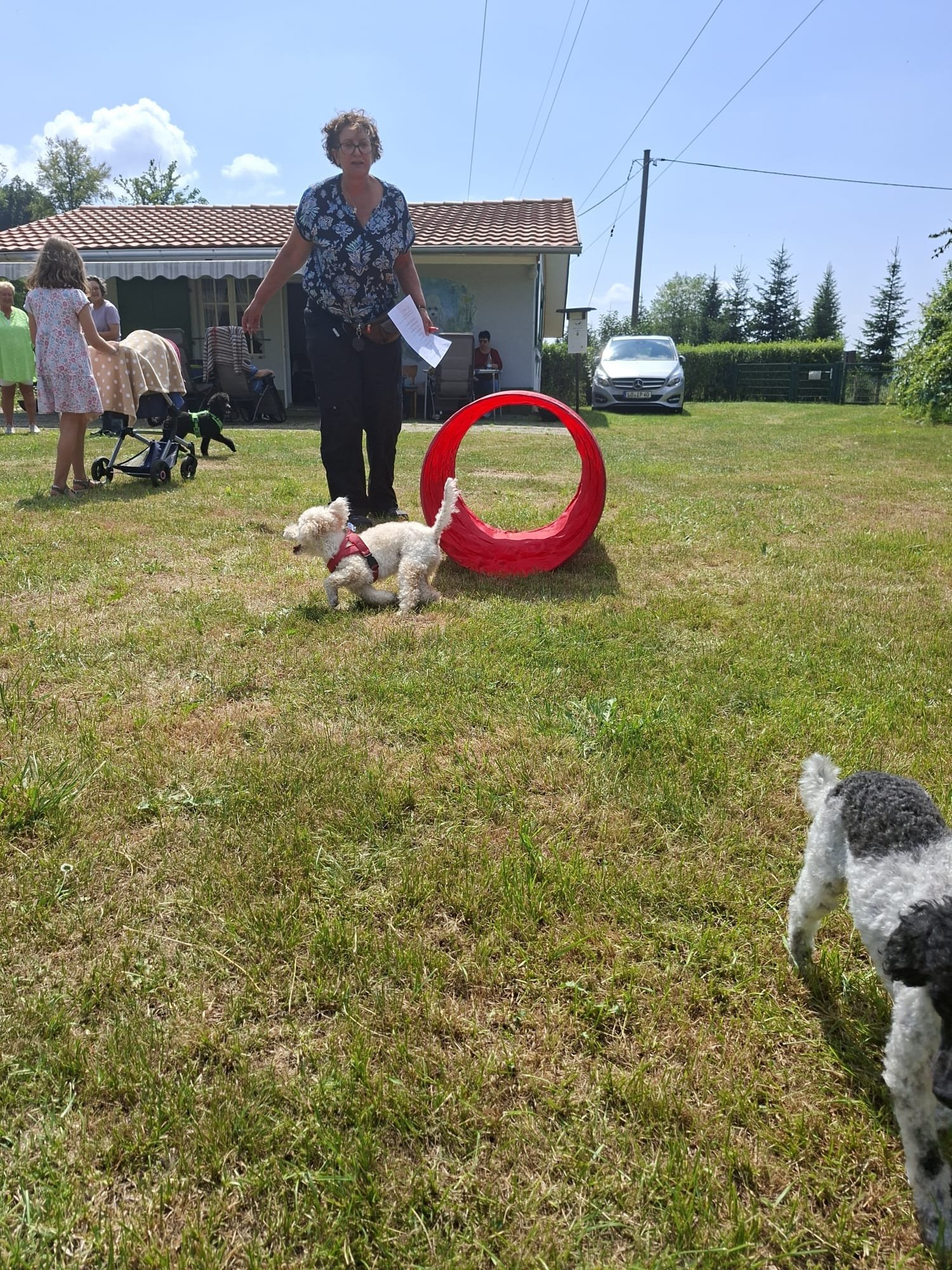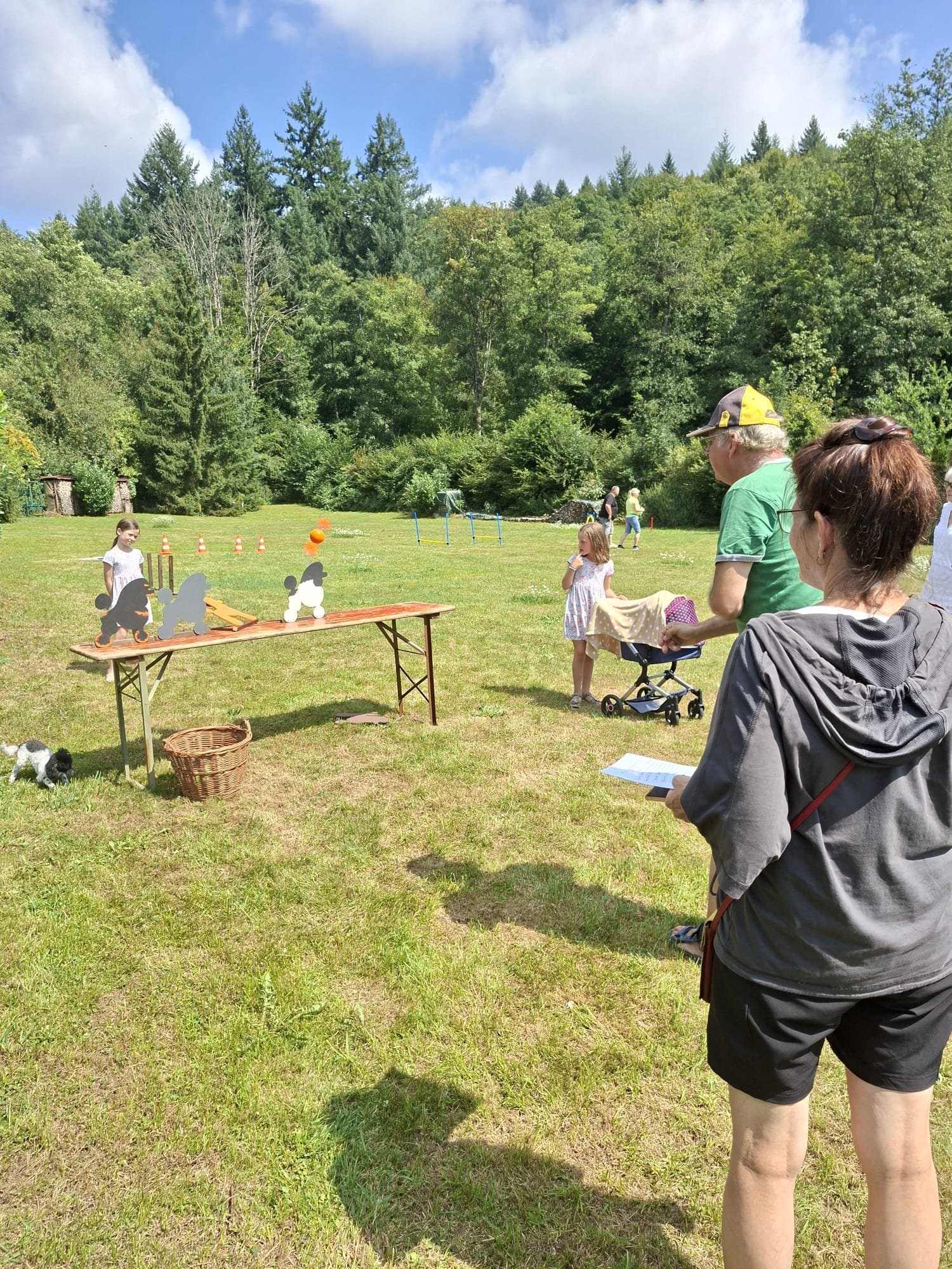 Mit einem Lächeln 😄 (und manchmal leichtem Zungenschnaufen 😅) meisterten Hund und Mensch die Stationen: Mal flitzte der Pudel durch den Tunnel 🌀, mal musste das Herrchen seine Zielsicherheit beim „Holzpudel-Abwurf“ 🎳 beweisen. Hindernisse, Sprünge und jede Menge Spaß – und das alles unter großem Gelächter 😂 der Zuschauer.