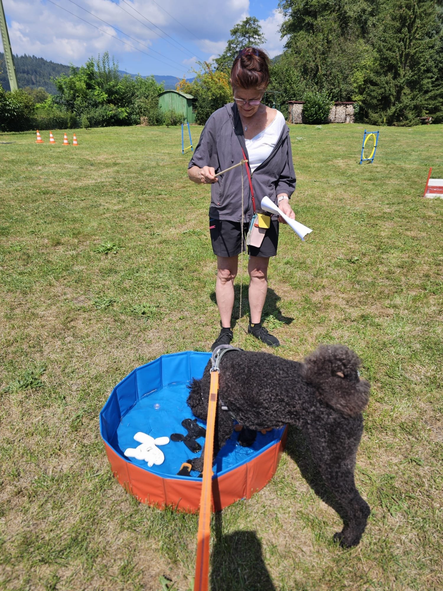 Zum Mittagessen wartete ein echtes Highlight 🍝: Spaghetti Bolognese mit Parmesan, dazu knackige Salate 🥗. Das Buffet war so reichhaltig, dass man fast vergessen konnte, dass danach noch ein sportliches Programm folgte. Aber unsere Pudel ließen sich nicht lange bitten – schließlich stand ein spannender Parcours bereit 🎯.