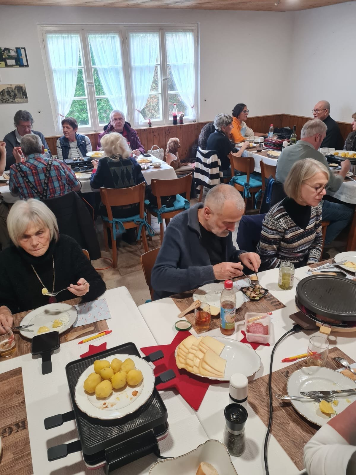 Als wäre das Raclette nicht schon genug gewesen, wurden danach noch Torten, Kuchen und frisch gebackene Waffeln aufgefahren. 🧇🍰 Niemand konnte widerstehen – und am Ende rollten alle zufrieden nach Hause, inklusive der Pudel, die sich den Bauch vollgeschlagen hatten. 🐕🎄