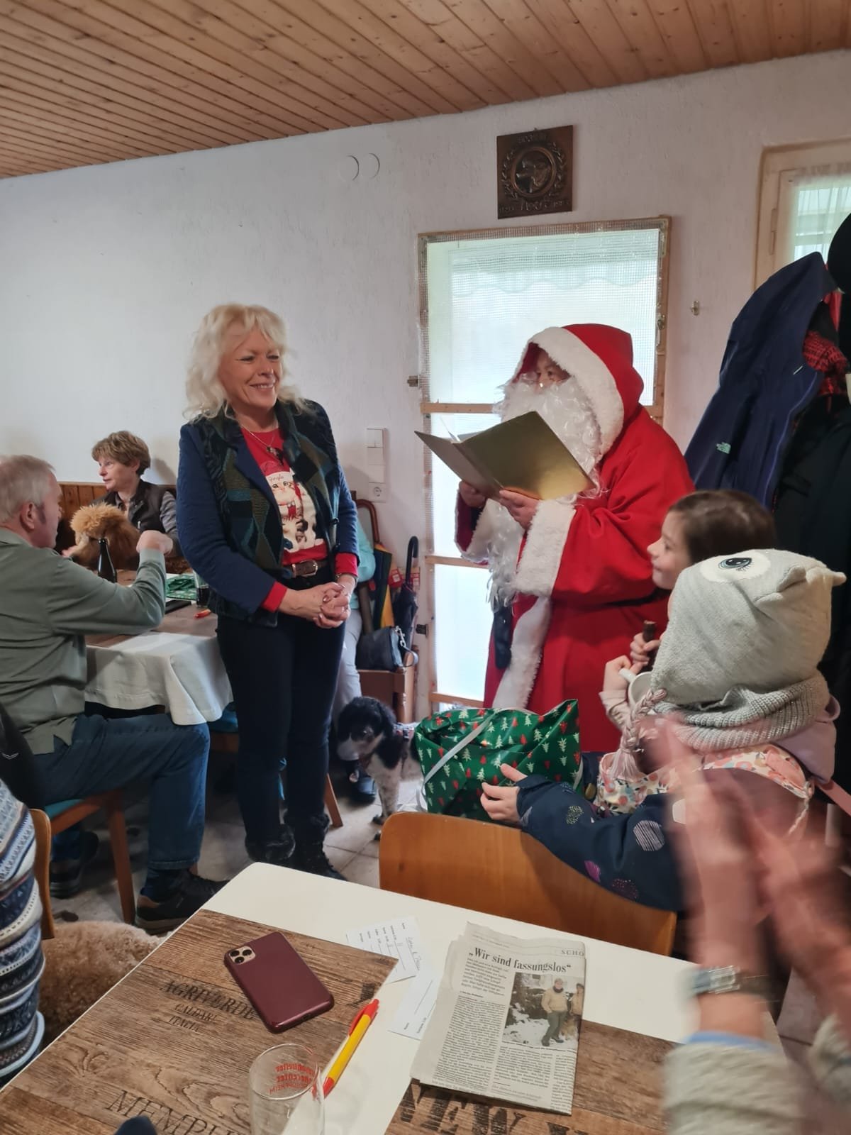Am Sonntag ging’s rund bei der Weihnachtsfeier der Pudelfreunde! 🐩✨ Um Punkt 11 Uhr strömten Zwei- und Vierbeiner zur festlich geschmückten Hütte, die vor Glanz und Glitzer nur so strahlte. Kinderaugen funkelten, und auch die Pudel waren völlig aus dem Häuschen – einer erschien sogar als waschechter Weihnachtsmann! 🎅🐕