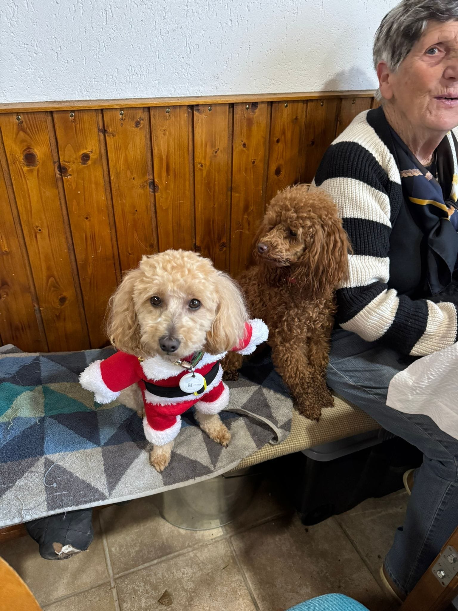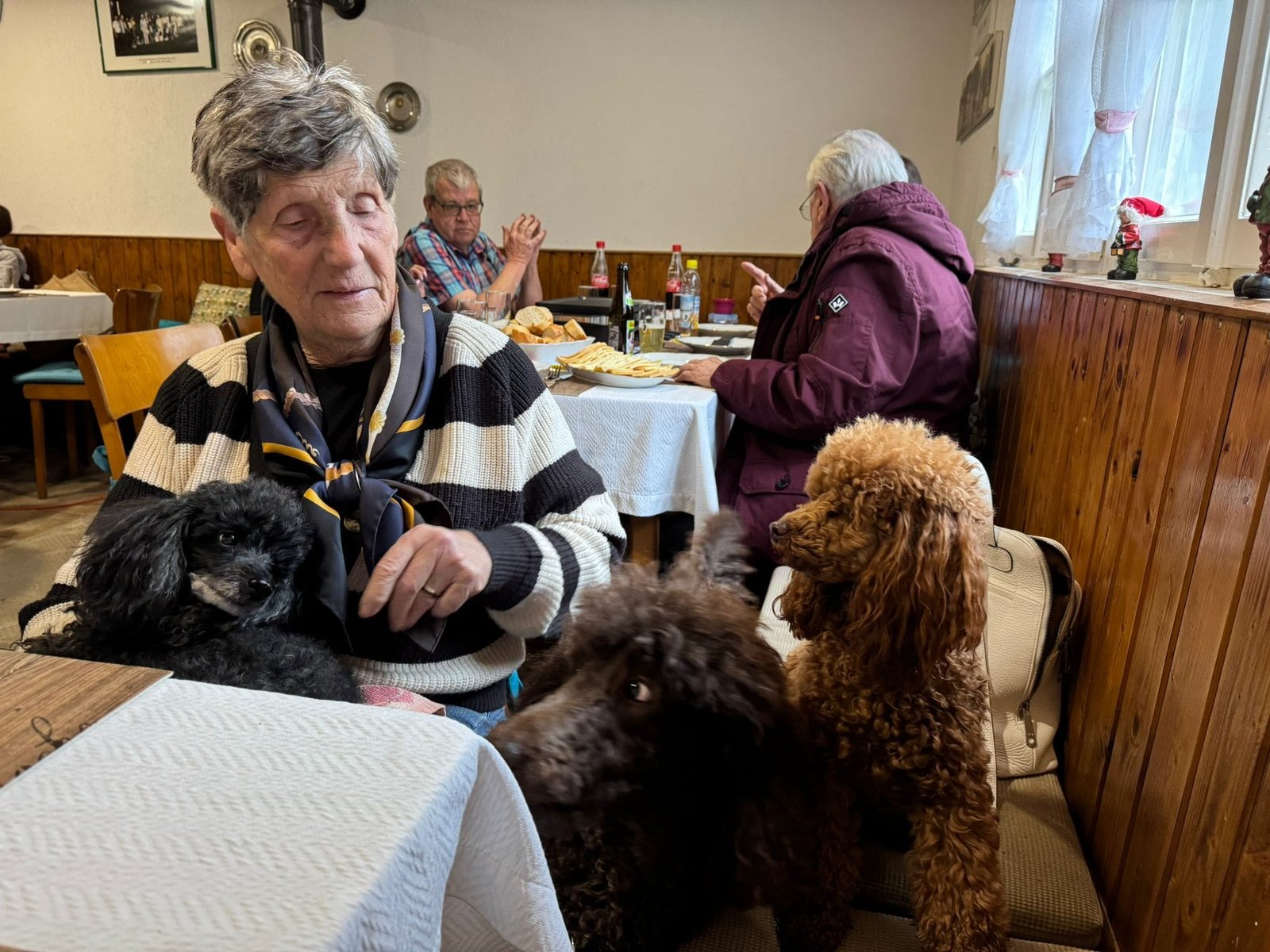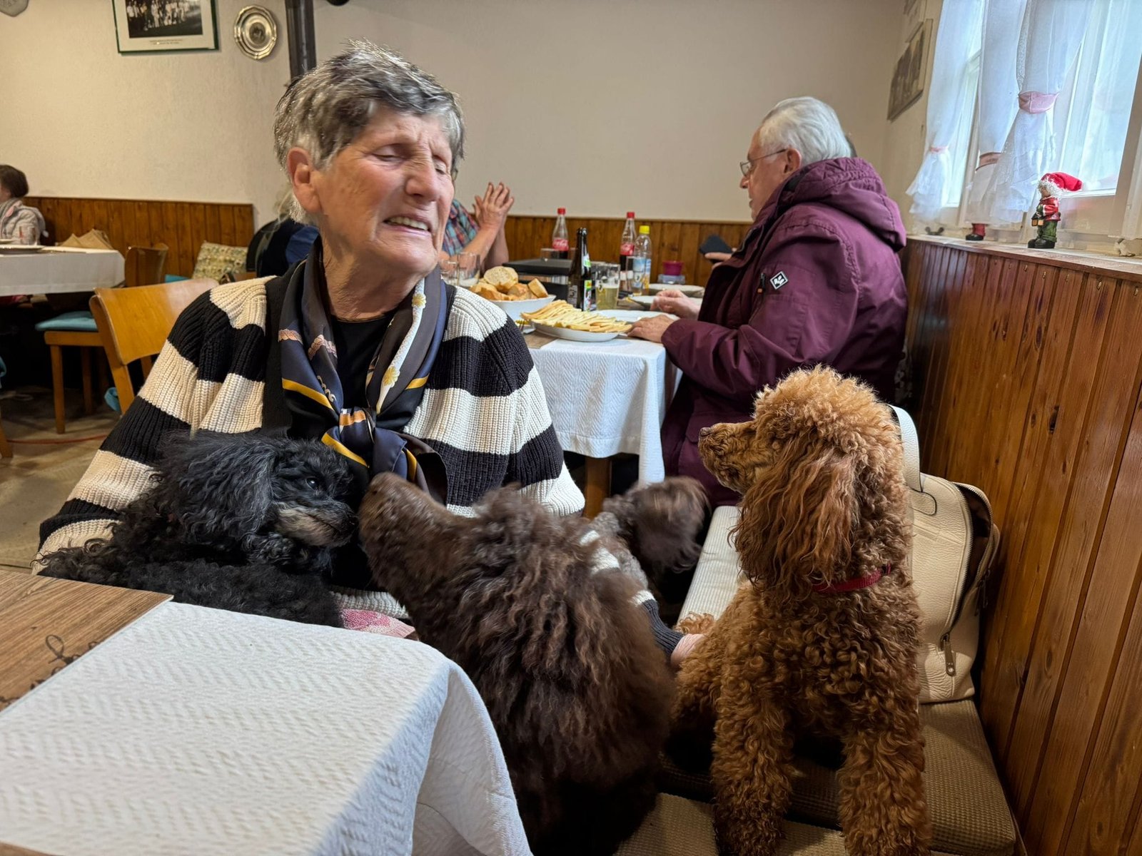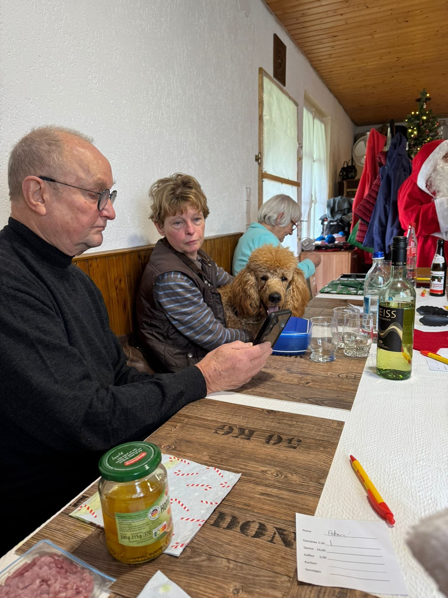 Während das Raclette ordentlich glühte und der Käse in Strömen floss 🧀, wurde geschlemmt, gelacht und gesungen. Selbst die Pudel waren voll in Weihnachtsstimmung – das ein oder andere Bellen klang wie ein „Jingle Bells“ 🎶🐕